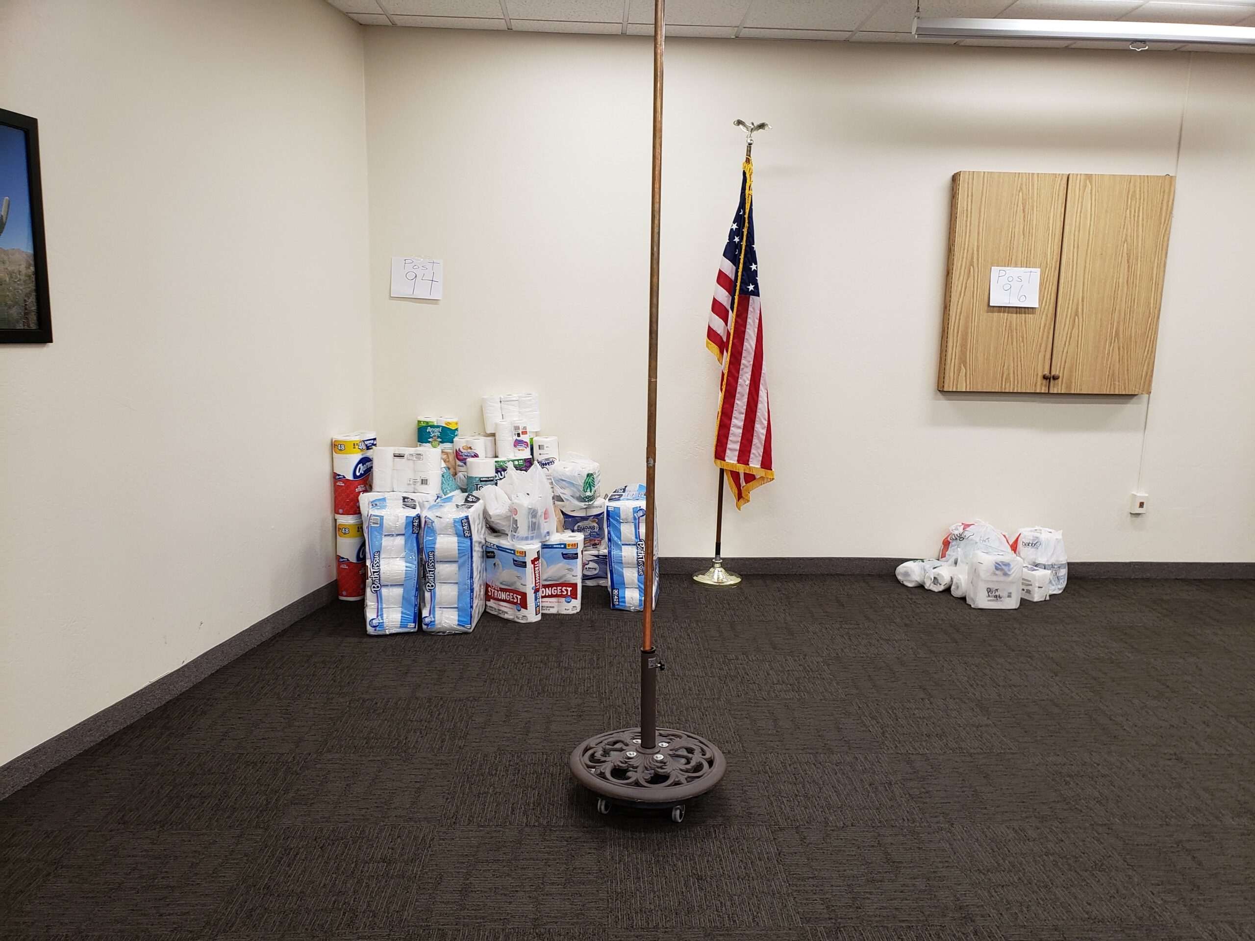 In Arizona! Post 145 challenged Post 94 and Post 96 to a paper products drive to collect paper towels, toilet paper, napkins and face tissue. They are to distribute to the James Walton House as part of the District 11 "Wipe away your debt" challenge project to inspire $1.00 from each post’s per capita dues contribution.